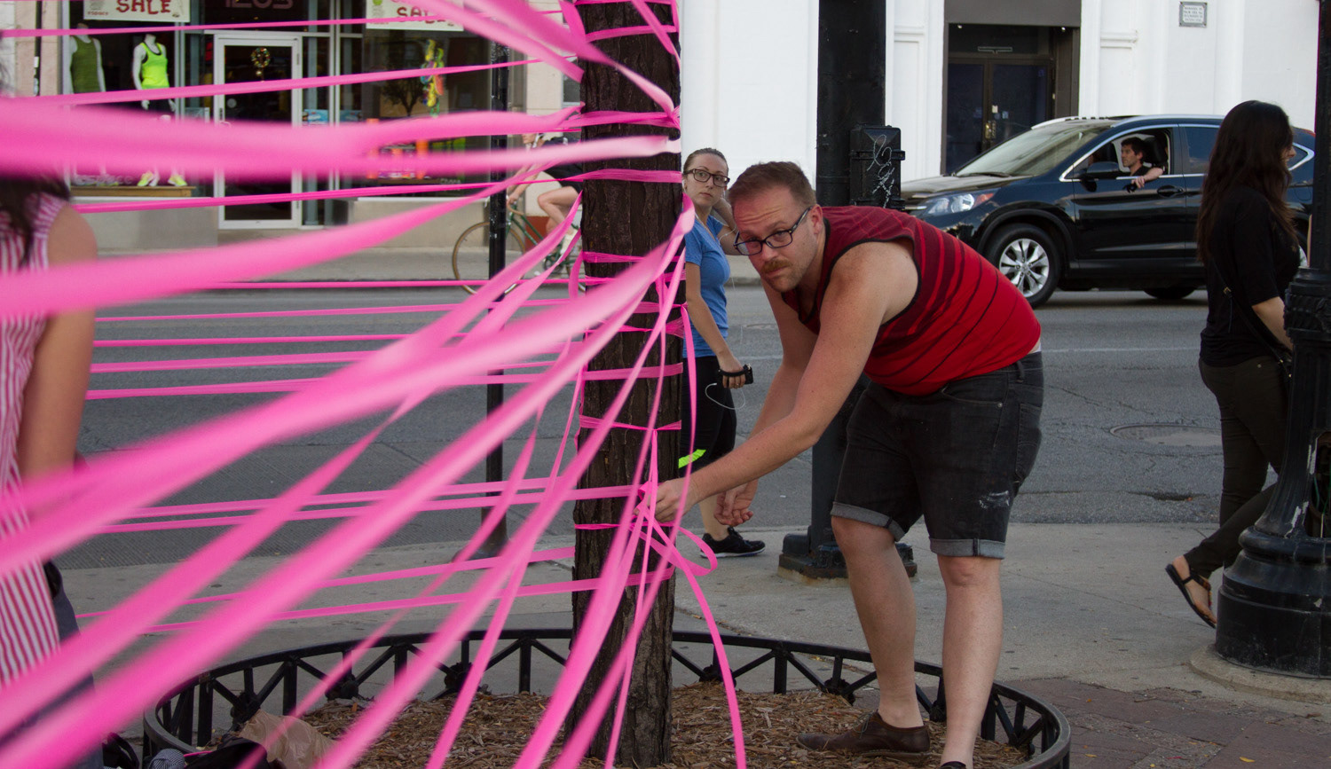 Contracted by Latent Design to design and orchestrate an afternoon of placemaking for "Tuesdays at the Triangle", an initiative of the Polish Triangle Coalition. This summertime series brings free music, performances, workshops, and pop-up vendors to this transportation hub in Chicago. Our event welcomed neighbors and commuters alike to imagine new spatial realities and to explore materiality with +4000 ft of donated surplus construction flagging tape.